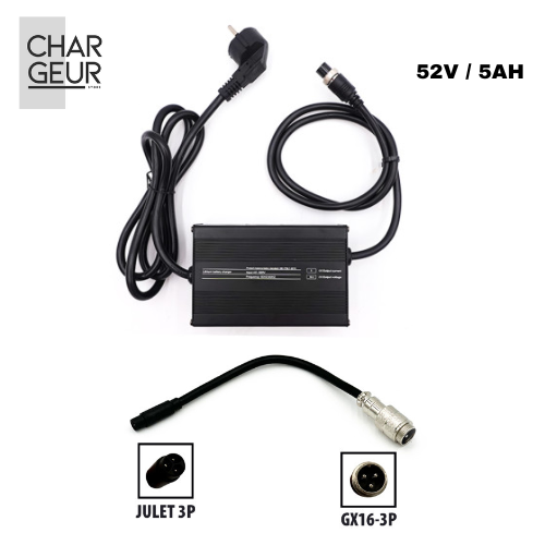 - Tension de sortie : 58,8V, adaptée à la batterie 52V de la Kugoo Kukirin G2 Master.